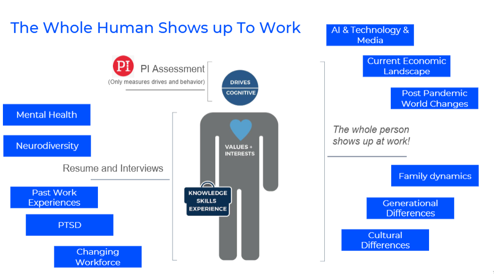 Note: People are much more than any personality or behavior type. They shared this graphic showing examples of many other factors that influence our behaviors. We all show up to work carrying different things, including many that aren’t visible or known.